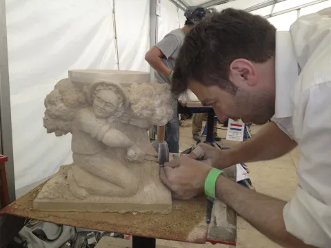 During the weekend of the 22nd/23rd of June I was excited to attend the annual Stone Masons Festival which was held in Lincoln this Year. Over 140 stonemasons came together from all over Europe to showcase their skills, network and generally have a fantastic time! As well as catching up with some of my old friends, I had the privilege of meeting many of the young and very talented emerging masons. There was an opportunity to take part in the yearly carving competition, which gave visitors the chance to see the stonemasons at work and really see for themselves the high level of talent, passion and skill there is within the trade. The sound of over 140 stonemasons all tapping and working away is a fantastic sound, one that can not be described but which really adds to the atmosphere of the event turning it into something magical and unique. The finished pieces from the carving competition were auctioned off raising a staggering total of £50,000 for Charity. With new and innovative techniques being used alongside traditional craftsmanship, some stunning works of art were created,with the highest bidder paying over £2,600 for a piece. Everyone had a wonderful time, with a friendly, welcoming and fun atmosphere I am already looking forward to the next one!