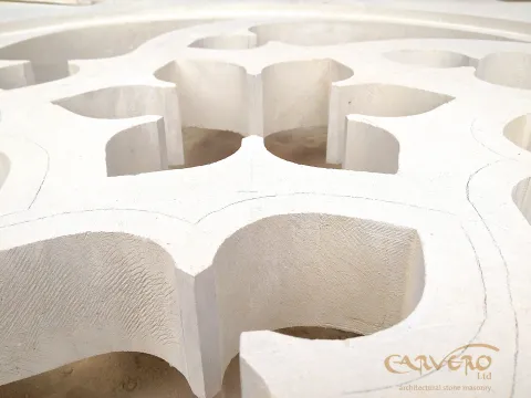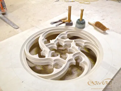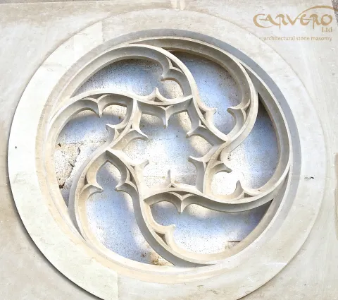 A very delicate stone tracery window carved in our Leicestershire stonemason workshop