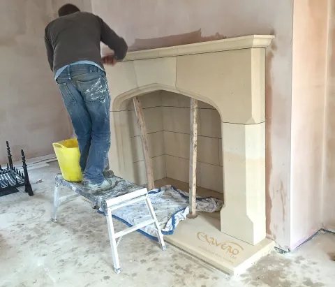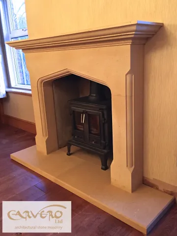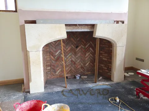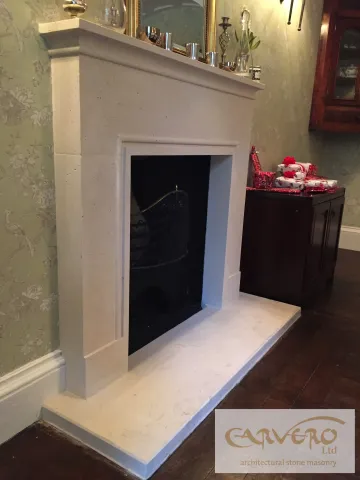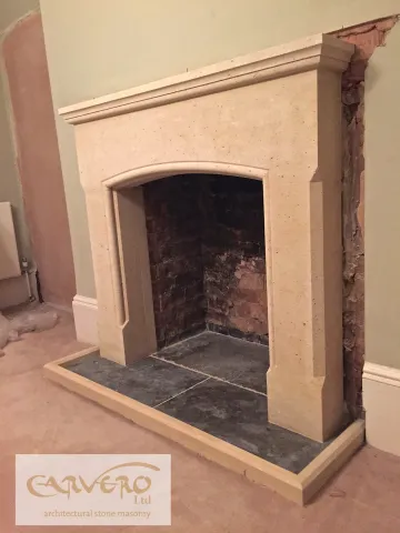 The last 12 month have been a very successful year for Carvero. In which our team had the privilege to be of service to many new clients. Over this time we made a lot of projects happening and today I like to show some of the bespoke stone fireplaces we created. Most of those fireplaces are very simple in design and perfect for a country house. The used stone is a cream, slightly rustic looking french limestone. We love this limestone for its humble, but noble appearance. The styles and sizes of the fireplaces vary depending of the taste and environment. Some images are showing the fireplaces right at the end of the fitting process and therefore are still wet or the plastering of the walls hasn't been finished yet.